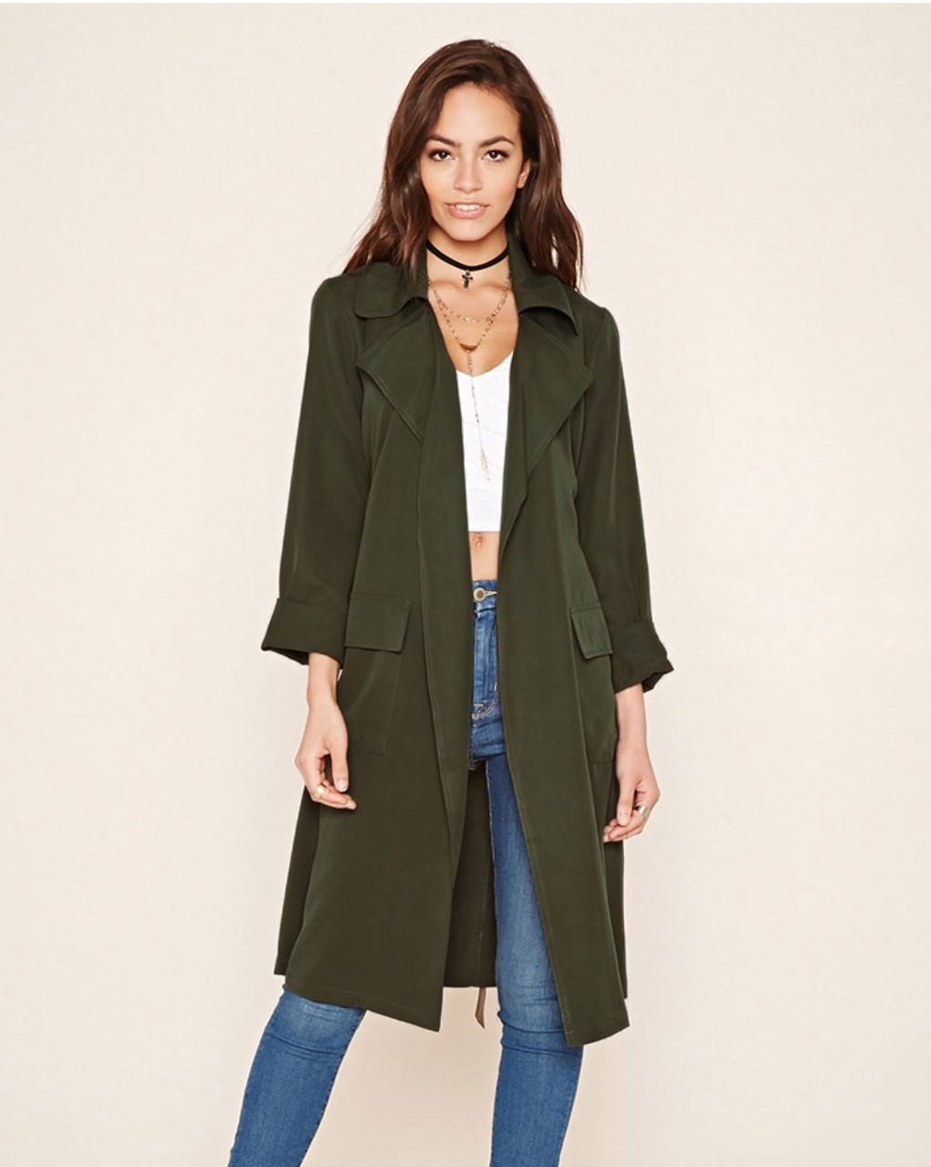 There are also more modern takes on the trench that give it a fresh update. Some include the shrench (short trench), hooded trench, and trenches with varying sized collars, floral patterns, and bold colors.