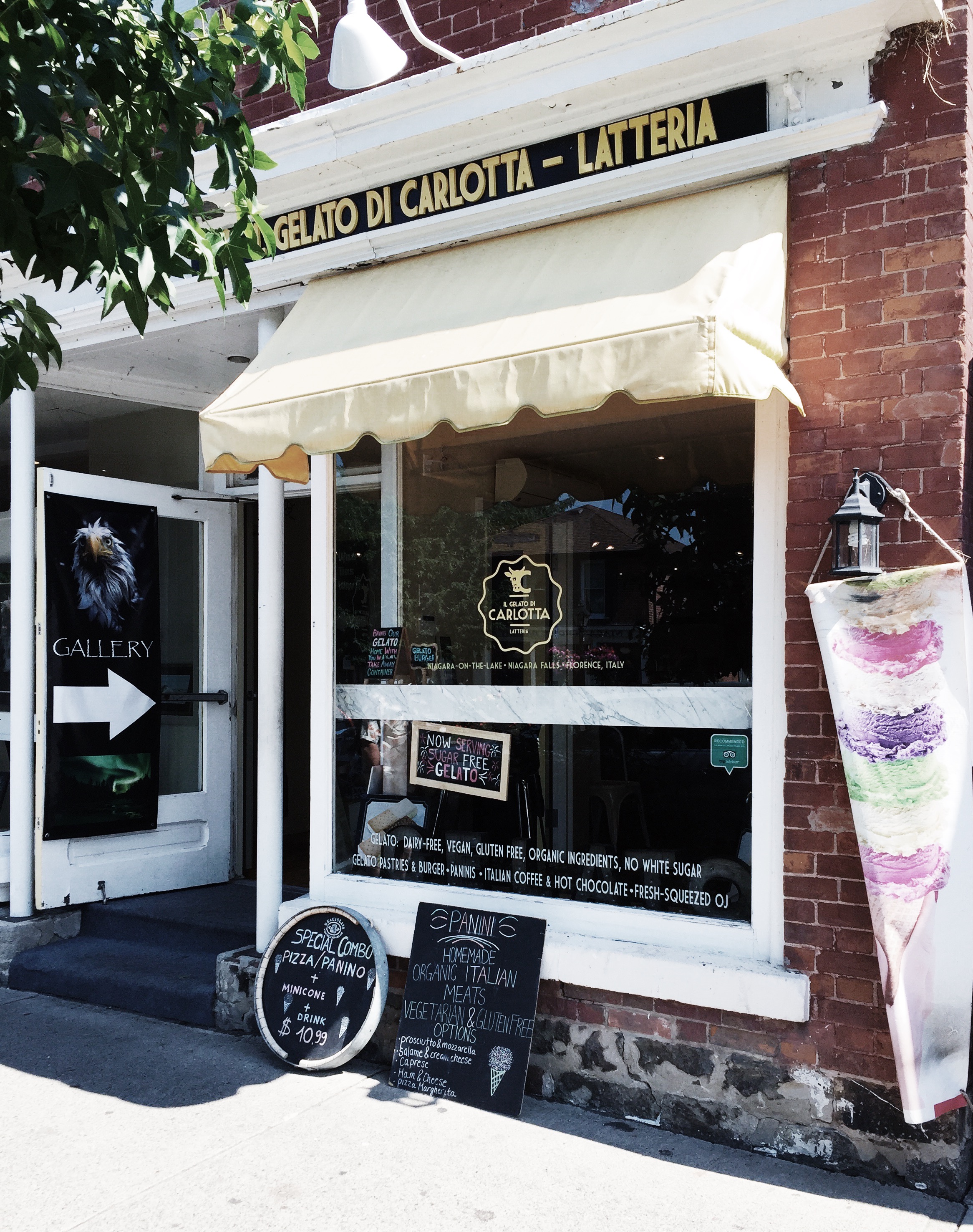 Our family is ALWAYS up for ice-cream. Our little ones love it a bit too much. If you’re in Niagara-on-the-Lake, Gelato Di Carlotta-Latteria is a must. David and I went there first with Emme and then brought David’s family there as it was that good. Their gelato is handmade and uses fresh, organic milk and cream; pure grape and raw cane sugars; Italian nuts; and fresh fruits. It is delicious!
