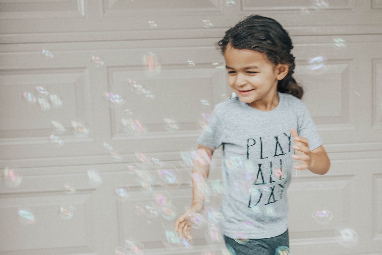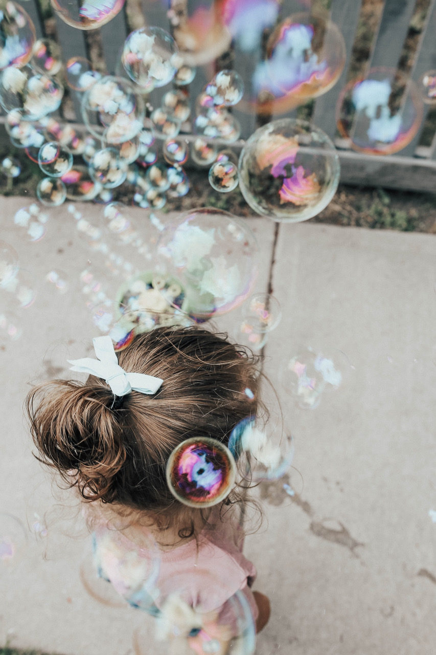 Spencer came up with his bucket list last night. As you can see, I let him include anything that he wanted. I love that he put down going to Palm Springs; he’s definitely related to me. One of his simpler requests was to play with his bubble machine with Emme.
